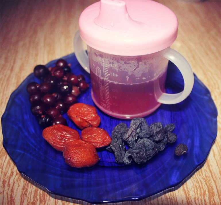 Польза компота из сухофруктов для малыша несомненна. Такой компот обеспечивает необходимыми витаминами A, B1, B2, B3, B5, B6 и микроэлементами: железом, фосфором, калием, магнием, кальцием и натрием.