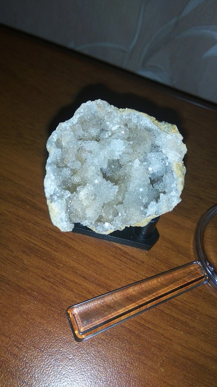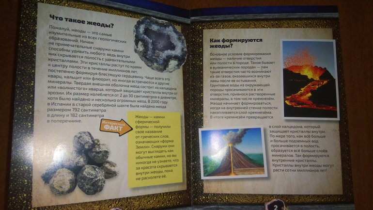 Для ребенка оказалось настоящей интригой 😀по инструкции мы взяли молоток,одели защитные очки и раскололи один жеод. Ну очень красивая штука-внутри заиграли кристаллы миллионами блесточек -жаль фотография этого не передает