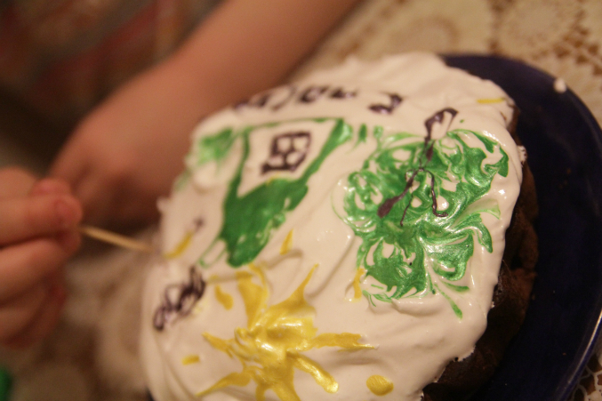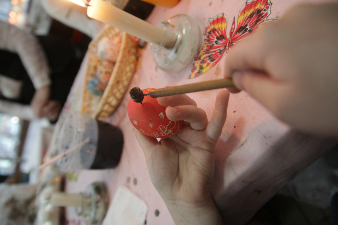 итак это рисование поэтапное воском..наносится новый и новый слой краски,между ними рисуется воском узор и потом получается разноцветная картинка. КРУТО!!!!!!!!!!!!!!!!!!!!!!!!!!!!!! самое интересное что япару ддней назад увидела передачу и безумно хотела так поримовать :)) а потом пришли домой печь куличи :))