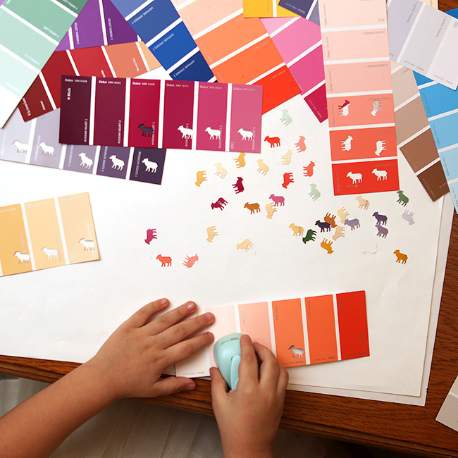 Делали фигурным панчем овечек для аппликаций и наполнения подарков. А еще попутно поиграли с ними, сортируя по цветами и расставляя от темного к светлому. Вот тут, кстати, много панчей и фигурных компостеров: .