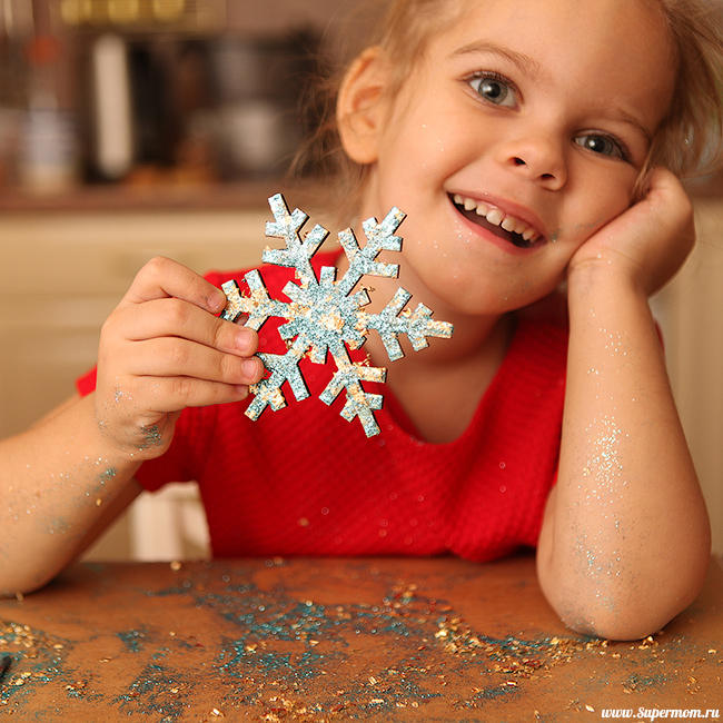 Перед вами самый красивый, но самый мусорный способ сделать красивую снежинку. Если вы сделаете такую снежинку, то еще неделю ваша кровать и еда будут блестеть как во дворце Снежной Королевы, знайте это.