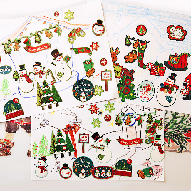 В каждом мешочке было что-то очень простое, но при этом увлекательное, как правило, это было что-то для поделок: фигурный дырокол, наклейки, штампики, блестки, фигурки для декупажа, блестки, пайетки, а еще хлопушки и бенгальские огни.