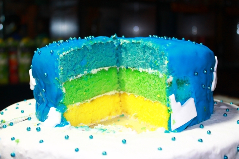 Растительные сливки и банка творожного сыра. когда в тесто добавляю краситель, коржи получаются более влажными. Радуга была только верхним ярусом. В этот раз торт был огромный, около 7 кг, готовился на крестины племяннику. Оформление мастика, очень вкусная кстати. Жаль, из-за жары мастика начала ползти.