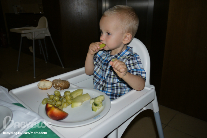 Дома мы на завтрак ели кашу, в обед суп-пюре из овощей, мяса и др.компонентов, на полдник фрукты и творог, вечером кашка и кисломолочная смесь на ночь. Проблемы возникли с обедом. Банки наши он уже не ел. Пробовали местные Nestle - не ел. Мяли овощи с общего стола - плохо ел, т.к. вкус не тот (привереда). С мясом совсем сложно - вареного не было, тушеное с приправами боялась. Мучились почти неделю, пока не встретили девочку на пляже, которая рассказала, что можно попросить повара в ресторане готовить супы для ребенка. Мы составили список продуктов, из которых готовить. С тех пор мы успешно ели обеды. Иногда брали в термосе даже в дорогу. Кормили в номере с игрушками. Для нас кормежка всегда была сложным процессом, а тут еще все новое. В ресторане Демьян устраивал настоящий бедлам: вся еда валялась на полу на метр от стульев (икеевские были, кстати). Никто нам ни разу не сделал замечания, но нам было стыдно, да и в номере кормился лучше. Так что с утра кормили кашей в номере, потом шли сами есть, а ему фруктики да хлебушки давали там. Также и с другими приемами пищи.