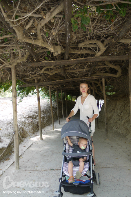 Просыпался Дёма, когда уже солнышко начинало заходить за горы, и мы собирались домой. Возили с пляжа и на пляж на коляске, т.к. было прилично идти.