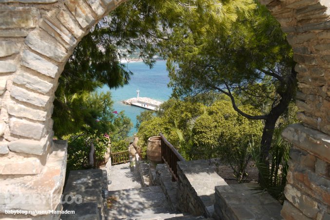 Вечер. Приходили домой - опять душ, кремы/бальзамы и прочее:) После чего мы кормили а ля полдником - творог и.т.д. Потом немного отдыхали или шли гулять по невероятно красивой территории отеля. И речь идет не о ровных грядках цветов и пальмах. Отель располагался на горе, и вся его площадь была каменистая, состоящая из всяких троп, пещер - это выглядело так, будто мы поехали на экскурсию куда-то к греческим развалинам. И каждый раз находили новые тропы и обзоры с высоты на залив.