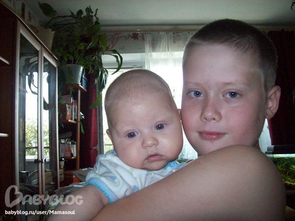Наш малыш уже подрос - 3 месяца. Сегодня ходили к врачу, мерились и взвешивались. Рост 61 см, а вес - 6 кг. 600 г. Прибавили 800 гр и 2 см. Папа наш научил сыночка агукать)))Ну он и сам умел, но одними гласными, а теперь добавились и согласные. Иногда разговаривает так долго, как будто что-то нам рассказывает) Тренируется переворачиваться со спины на живот. Уже и ногу перекинет и на живот почти ляжет, а тяжёлая голова никак не поднимается)Пыхтит-пыхтит, как маленький паровозик. Играет игрушками, подвешенными над ним и по бокам от него, уже порвал подвеску, которя рассыпалась кучей составляющих - силач) Жуём всё, что можем затащить в рот. Грызём прорезыватель с остервенением. Слюней - море....без слюнявчиков уже никуда не ходим.Но дёсна ещё не такие, при кторых зубы вылезают. Ждать нам ещё их не скоро. Любит лежать на коленках у кого-нибудь в полулежачем положении, смотрит телевизор и всё, что происходит вокруг. На улице тоже уже не любит лежать в коляске - ему по сторонам смотреть надо. Ранние сейчас дети, любопытные.