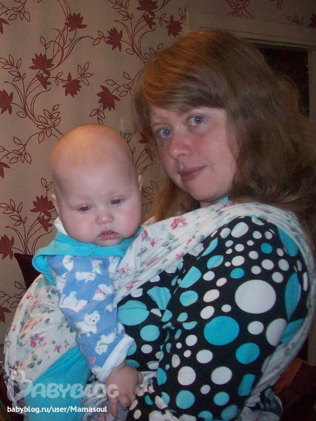 И ещё мы изобрели слинг-шарф из простыни (за 30 секунд), а то Ромка как-то был весь день беспокойный, не лежал один никак, пришлось выкручиваться. Кстати, очень удобная штука, нам всем понравилась))):