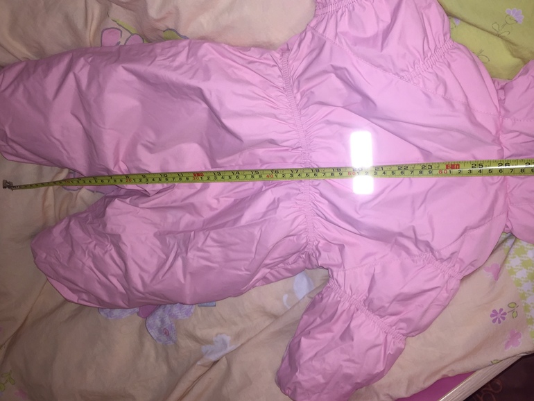 Я помню что до конца зимы его одевали, при росте 74. Замерить в натяг я не смогу физически. И если ребенку в 68 свободно,а в 80 утонете,то логически думать ,что 74 будет хорошо)