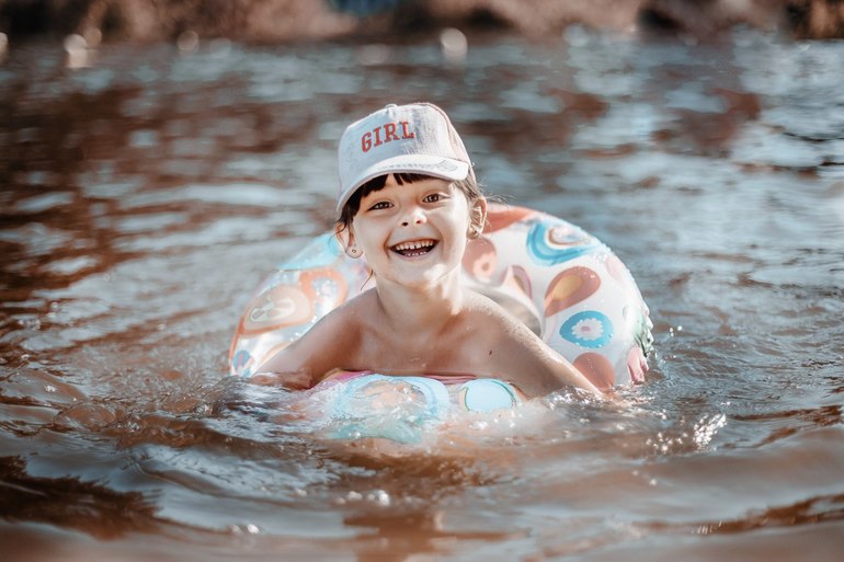 Но в целом отдохнули они просто отлично. С погодой повезло, все время было солнечно, вода в реке хорошая. С воды вытащить дочку было не реально))) Плескались в первой половине дня и потом ещё после дневного сна ходили на пляж. Как она там бабушку не уморила, я не знаю))))