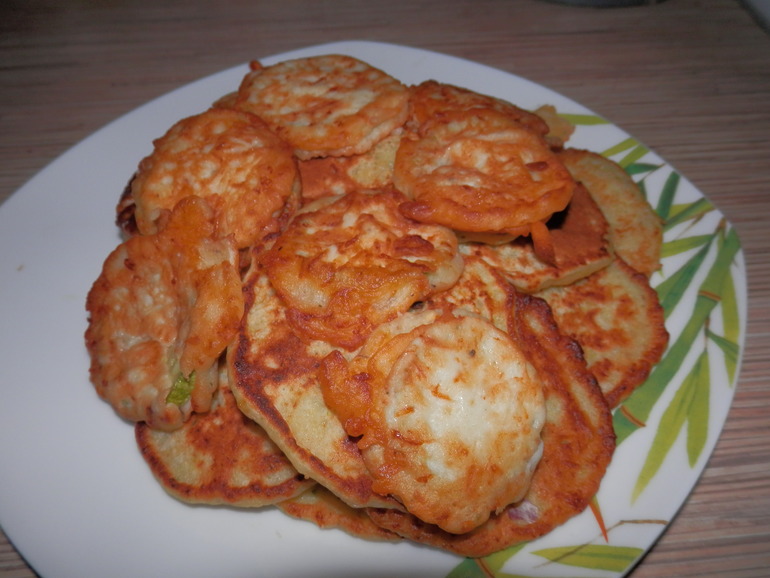 Филе мелко режем, зелень, лук и чеснок тоже измельчаем. смешиваем с яйцами и майонезом (все на глаз). И жарим как оладьи на раскаленном растительном масле![]()