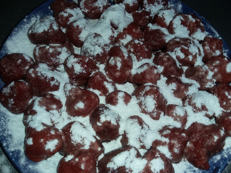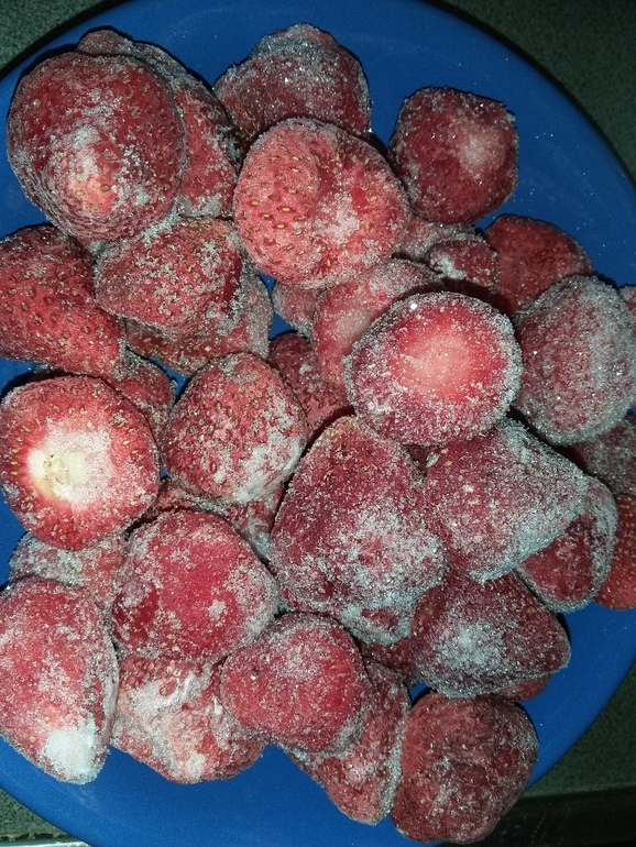 Поллитровую банку замороженной клубники разморозить при комнатной температуре: