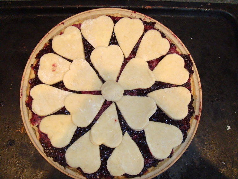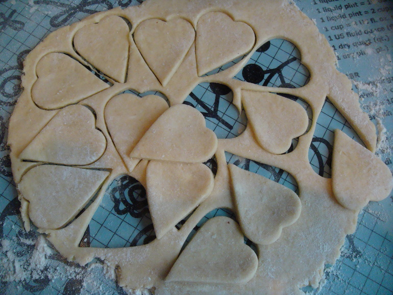 Можно уже так поставить запекать еще на 5-7 минут. Но у меня оставалось тесто и я нарезала сердечек: