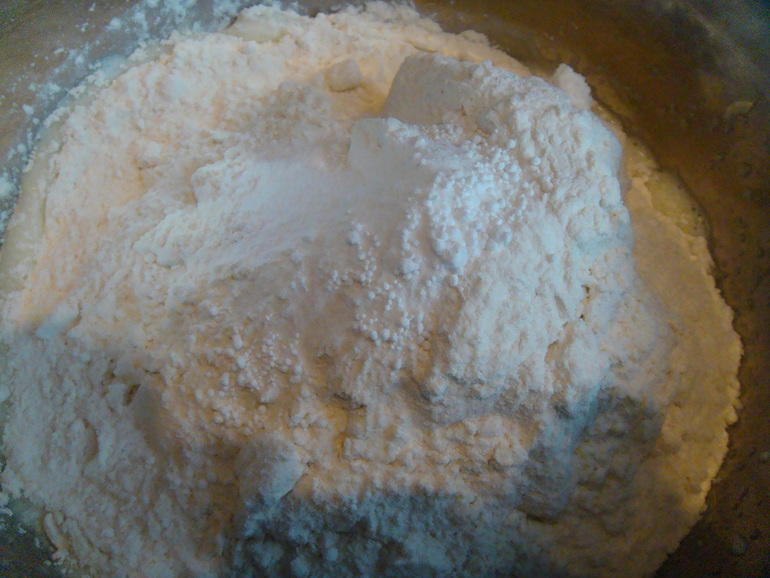 Перемешать и добавить 1 ч.л. разрыхлителя и муки до эластичности теста:
