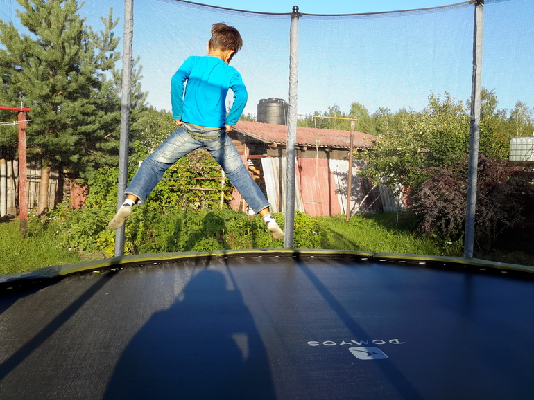 И чтоб 2 раза не вставать мы тут в декатлоне купили месяц назад гиганский 4,5 метровый батут