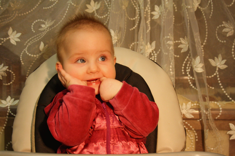 А моя засранка ну никак улыбаться не хотела, зато с удовольствием показали свои зубки так: