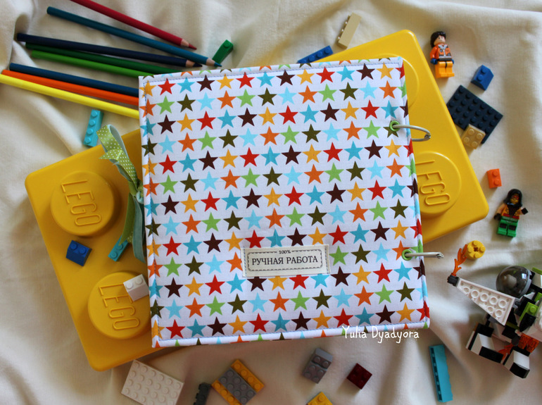 Сегодня я с новой работой, это детский альбом в обложке из американского хлопка. Он подойдет и новорожденному, и малышу постарше. В альбоме оформлены только форзацы: на переднем - рамка для заглавной фотографии и место для подписи, на заднем - карман для диска, дополнительных фото, записок или памятных мелочей. Внутри 25 листов дизайнерского картона, на которых вы сможете самостоятельно разместить фотографии, сделать подписи и вообще оформить их по своему желанию. В альбоме поместятся, кроме заглавной, 50 фото 10 на 15 или 100 фото 9 на 13 (фотографий меньшего формата может поместиться гораздо больше:))