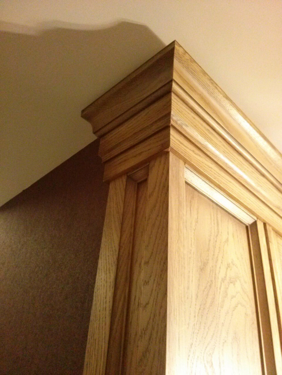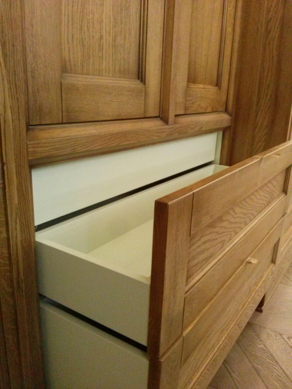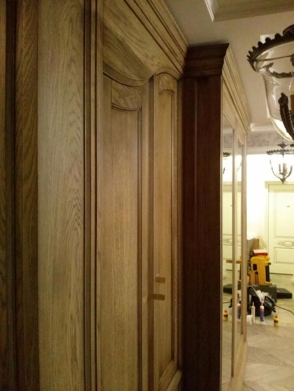 Корпус из ЛДСП, фасады из шпонированного МДФ + дерево.