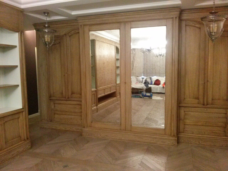 Добрый день! Для примерного расчета стоимости мне нужно знать из какого материала вы хотите чтобы был сделан шкаф (дуб, лиственница , бук, ясень, сосна или ЛДСП, МДФ). Например: можно сделать корпус из ЛДСП, а фасады из шпонированного МДФ, внешне будет смотреться как будто шкаф выполнен из дерева.
