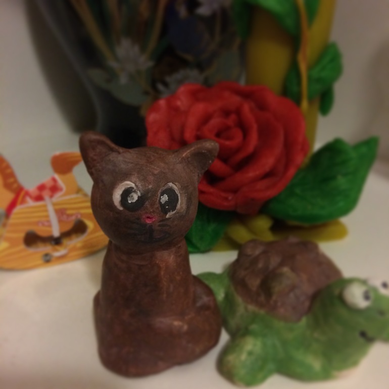 Соня моя очень любит лепить, особенно миниатюры. Выкладываю несколько ее работ из пластилина, глины, воздушного пластилина и полимерной глины. Они все такие мелкие, не больше мизинца, я даже удивляюсь, как она эти работы умудряется так детализировать: