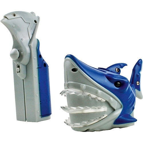 8. Игрушка от компании "Sky rocket" - грозная мини-акула. Радиоуправляемая хищница станет любимой игрушкой вашего малыша! Акула прикреплена к базе на колесиках, двигается довольно быстро в 4 направлениях: вперед/назад, вправо/влево. Управляется с помощью пульта.