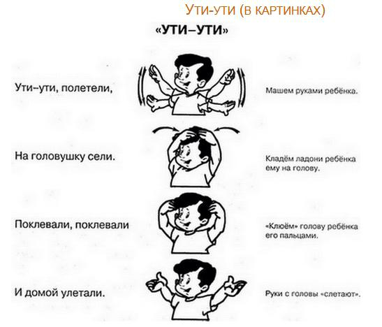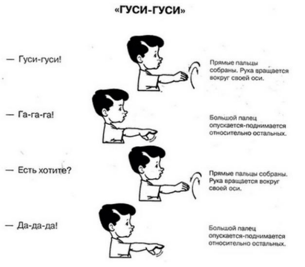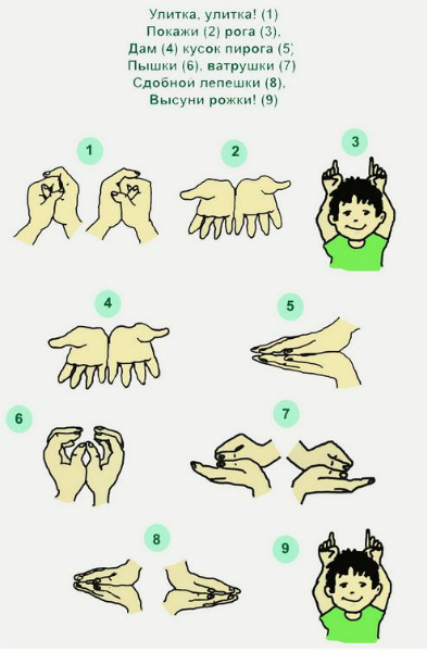Пальцы обеих рук сложены в кулечек, изображая плавающих и ныряющих рыбок.