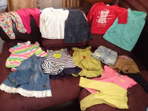 - белая с балетками Mothercare 86 (одевали 2р.,на левой рукаве есть небольшое желтое пятнышко,не пыталась отстирывать,может если в ручную постирать или применить какие-либо средства,то оно и отстирается,пятно не особо и заметно в самом низу рукава,где идет прострочка ниткой) - 300