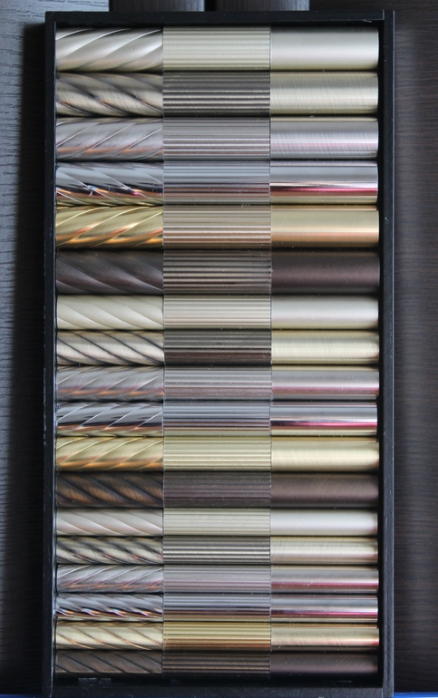 Тона сверху шампань, бронза, хром, сталь, латунь, шоколад. Диаметры 16, 20, 25.