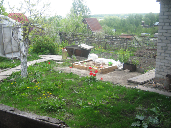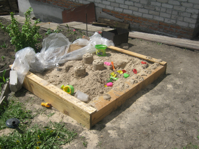 На днях (кажется писала уже) заполнила песочницу боровым песочком...уже опробовали))) На переднем плане мой клочкообразный газон))) еще ни разу не скашивали- сорняки не выдерешь без угрозы для газона...вот посмотрим что будет дальше...