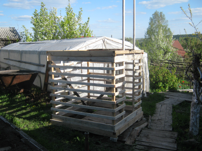 а вот остальное было довольно таки быстрее- я ковырялась в огороде, а папа, доча и Юра строили! Ставить на ровное место больше некуда, поэтому строить домик начали тут же. Папа размахнулся как всегда!