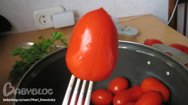 Тут и помощница подоспела, помидоры она не ест, а с сосредоточенным сопением разбрасывает по кухне )))