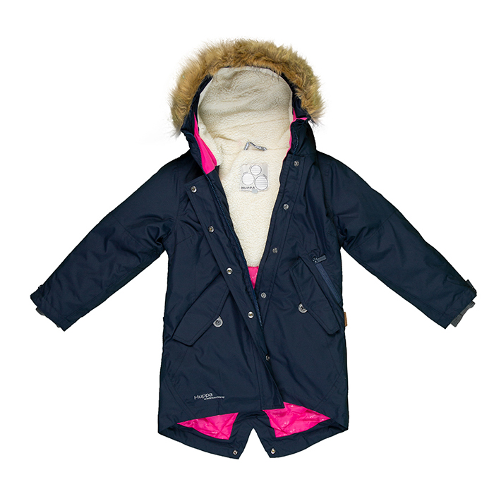 В капюшоне и половина спинки утеплены мехом.