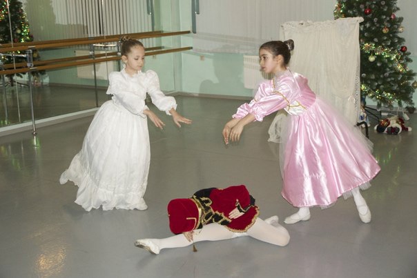 А перед новым годом они ставили настоящий полноценный спектакль - Щелкунчик . Чуть короче чем оригинал , полтора часа все длилось , но все танцы танцевала наша группа и чуть помогали малыши ) пока все было в сыром варианте , поэтому концерт был для родителей в репетиционном классе , но весной у них премьера на большой сцене ) Милане досталась почетная роль Щелкунчика , она конечно в начале расстроилась , типа все в юбках а она мальчик , но потом когда всех исполнителей главных ролей и ее в том числе разместили в отдельную гримерку - она очень возгордилась )) поразительно как столько танцев умещается в их маленьких головках ) во время второго акта у Миланы случился конфуз - шапка щелкунчика спала ей прям на глаза , поправить она посчитала лишним , типа настоящие балерины не стали бы посреди танца что-то поправлять , поэтому несколько танцев протанцевать в полной темноте , практически на ощуп ))