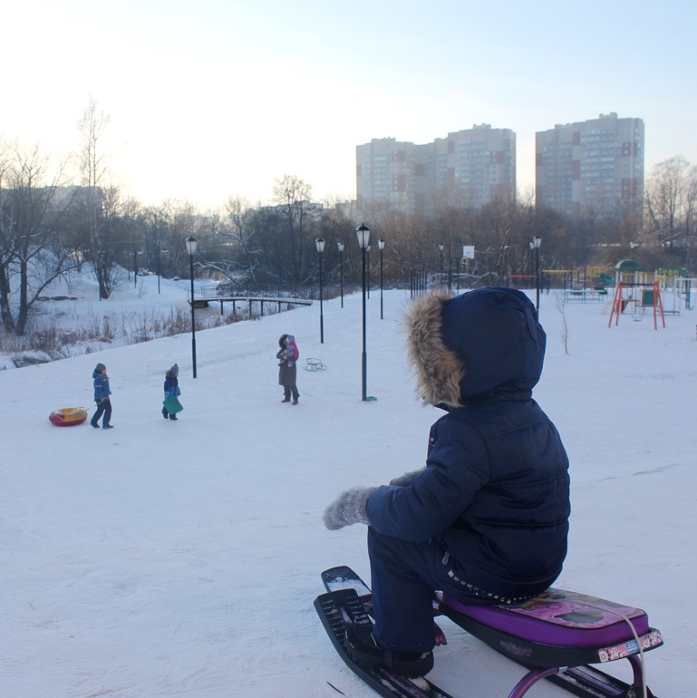 Мороз и снег! И солнце, хотя на горке его как раз не было. Как обычно бывает, на фото не виден уклон горы. А ведь дух захватывает, ух!