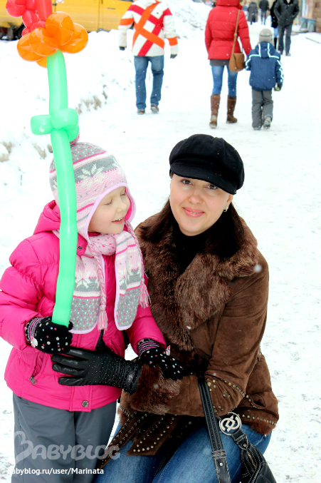 Вообще -то мы не любители городских гуляний,но в этот день решили прогуляться с дочерьми.Фотик взяли ,но сфотографировать там было просто не возможно.У миеня такое впечатление,что наш народ вышел поесть и попить водки(дай только повод).Площадь на которой было гулянье(пляски и лазанье на столб...) полна пьщего народа,кругом валил дым от спаленных шашлыков.Мы быстренько протиснулись ,купили Арише шарик и пошли домой печь блины.Блины были и с икрой и с рыбкой,ну и конечно Аришины любимые сладкие с апельсиновым соусом!