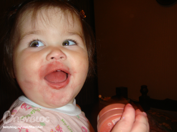да,нарумянить рот святая обязанность каждой годовалой делопутки)))всю косметику изгрызла и раздолбала эта Чита