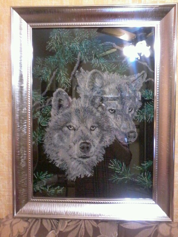 Моя мама занимается вышивкой бисером. Эти работы в данный момент продаются. Размер работ 53*70, 70*52.
