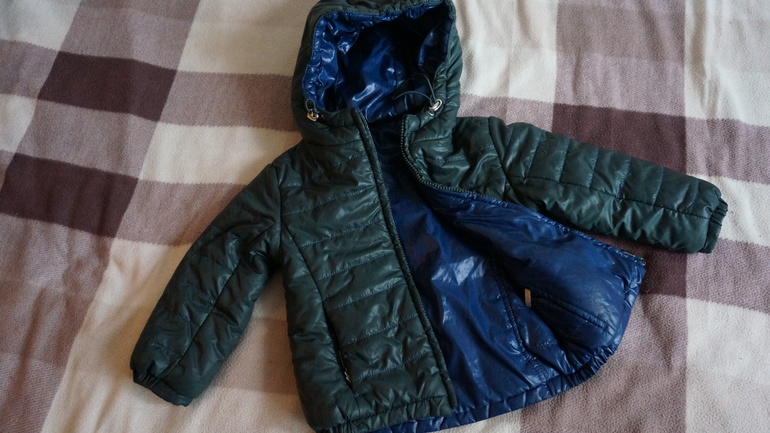3. Курта Aviva двусторонняя (зеленый- синий) размер 2 года (мы носили с роста 88 до 100) Очень удачная модель - манжеты на резиночке, внизу побокам присобрана, нигде не задувает, состояние отличное. 1200р Продано