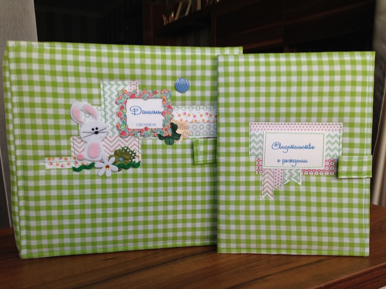 Альбом заказной. Плюс к нему папка для свидетельства о рождении.