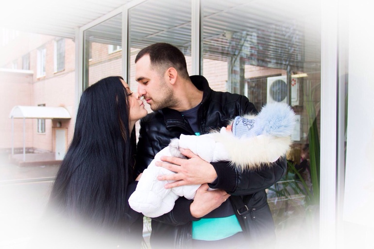 Какие красивые родители, малыш и сногсшибательный костюмчик на выписку!