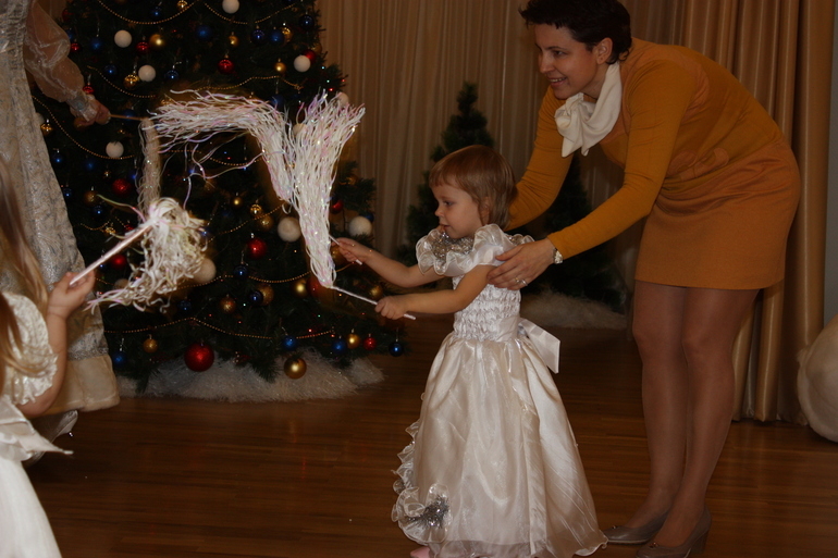 да мне кажется она вообще не поняла, что это был праздник)) привели ее куда-то побегали по залу на Деда мороза никакой реакции.
