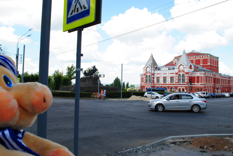 И вот, нашелся чудесный человек: Света, которая согласилась показать Свину Пермь! Но, прежде чем отправиться смотреть мир, нужно оглядеться. И вот первый город в альбоме нашего путешественника это Самара.