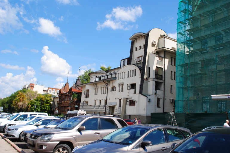 Деревянное здание рядом - музей-усадьба А.Н.Толстого (Литературный музей), рядом с ним установлен памятник Буратино.