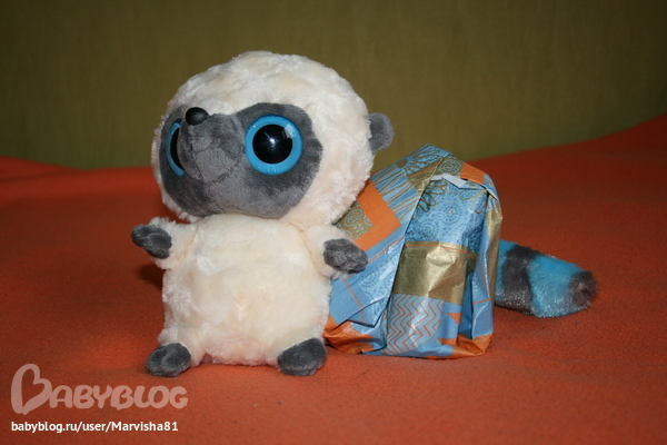 А для мамы и сестры мужа удивительный пушистый зверёк лемур и сюрприз в подарочной бумаге для души и тела :)