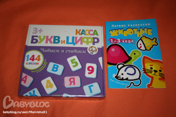 Для племянника 2 лет Касса букв и цифр из Детского мира и раскраска для малышей с широким контуром и памяткой для родителей: