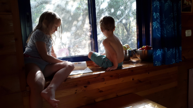 Здесь хочется сажать растения, зажигать вечерами свечи, валяться в джакузи, пить вино и рисовать, читать детям вслух. Мы стираем на руках мыльными орехами, отращиваем корни веточкам и листьям, развешиваем букеты трав над окном. Мне очень, очень уютно здесь, и я бы осталась тут навсегда))