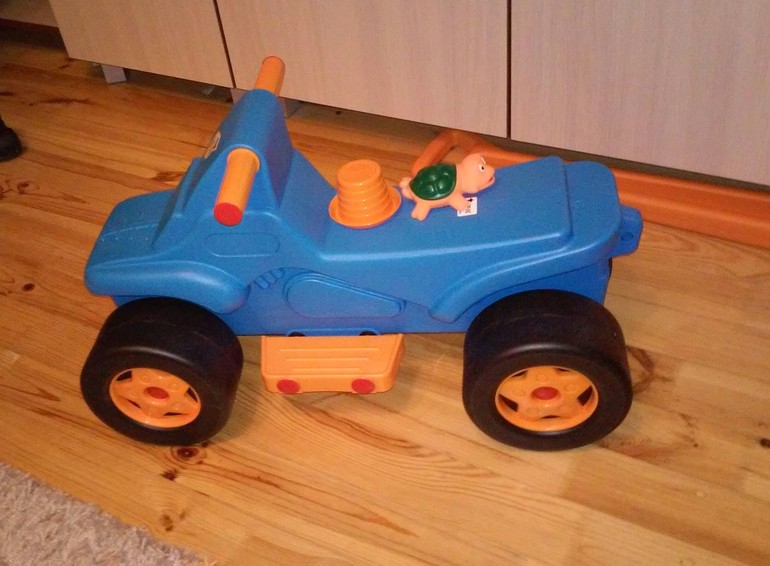 Вот сразу видно страсть к машинам!! Крестная с мужем подарили Максу после Рождества. Думали что нам еще рановато, и будет стоять до лета, но решили его просто посадить, сколько было радости! Катаемся второй день по квартире! Первая тачка в нашем автопарке)))