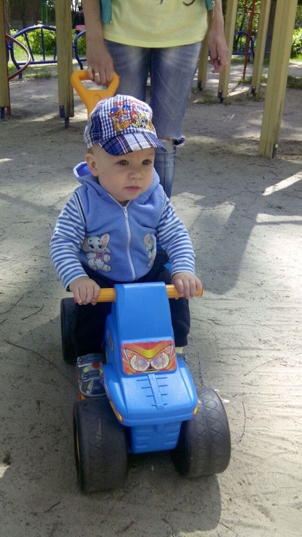 Макс очень любит наши прогулки, только выходим с квартиры, улыбка от уха до уха, в лифте аж дух захватывает, ну и когда приходим домой крик, плач и требование вернутся во двор.