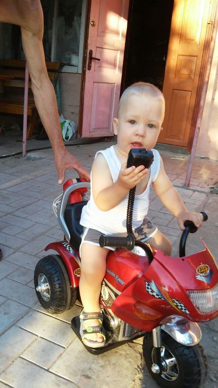 Подарил Максу крёстный мотоцикл, крутой такой, на аккумуляторе! Будем учиться ездить!