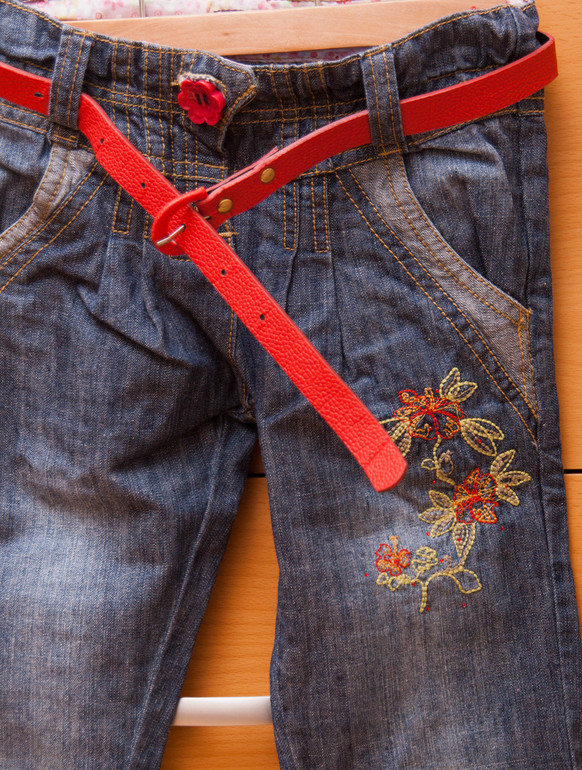 9. Джинсы с красным ремнем, р. 5 лет 300 руб.